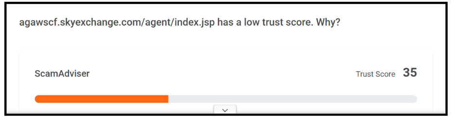 According to ScamAdviser, app.skyexchangepro.com might be a scam with several indicators found.
