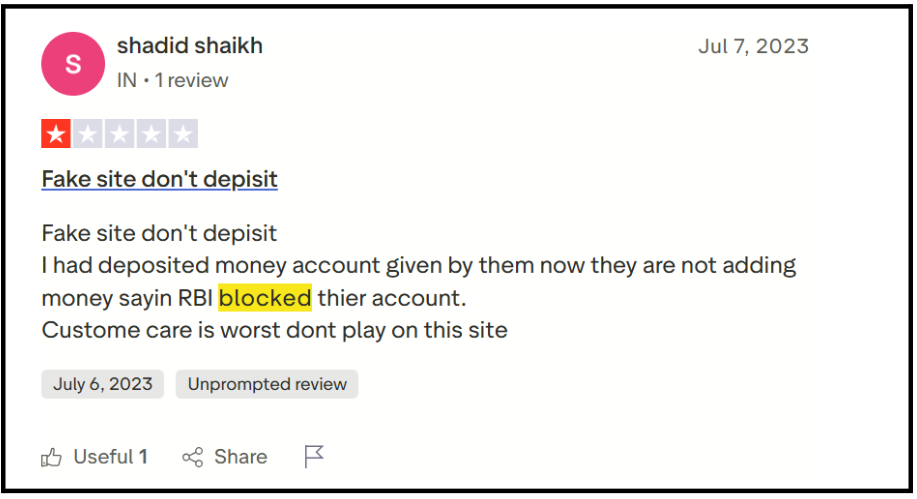 The government blocked their websites through court orders. A criminal FIR was filed with serious charges. Multiple domains flagged by ScamAdviser. Low safety score from Casino Guru.