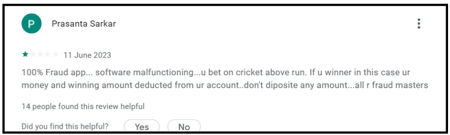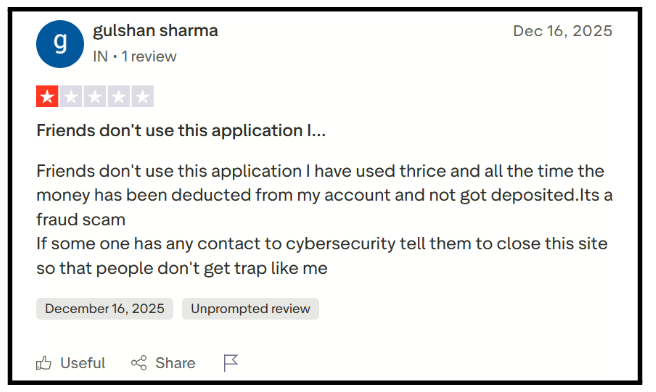 Gulshan used the platform three times. All three times, money was deducted from the bank. Never credited to the platform account. Direct theft. He’s warning others and asking for cyber security intervention.
