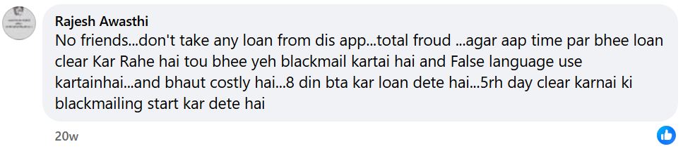 Rajesh Awasthi (Facebook user) warned his friends and other people about the Timely Purse loan app fraud.
