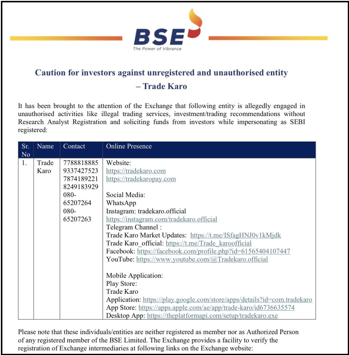 BSE and NSE have issued notices for the public to stay informed about this scam.