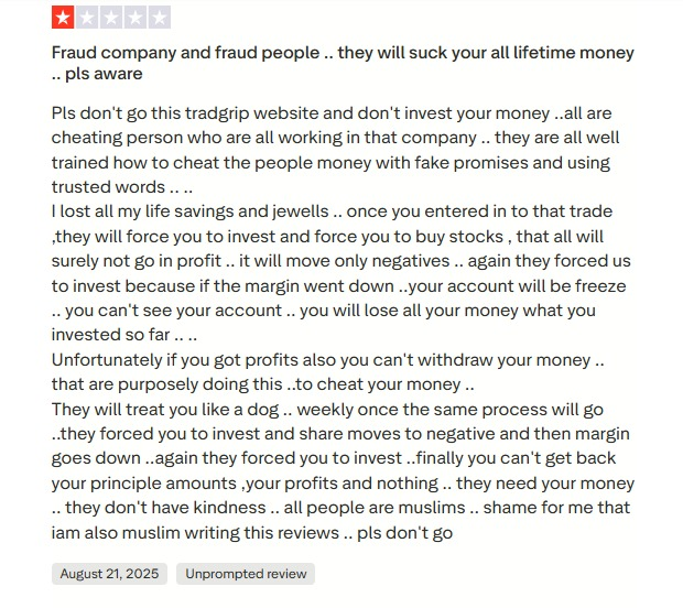 The example of this case is very clear that a domain related to Tradgrip was the fake platform that was used in a scammed investment case.