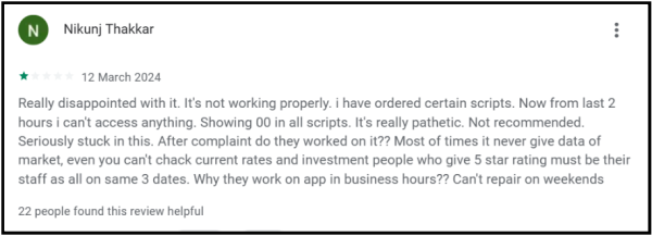 Behind every review is an investor and real money on the line. What appears as simple ratings on Jainam’s Google Play apps actually reflects lived experiences, both good and bad.