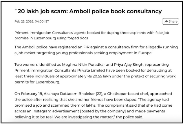 1. Fake Luxembourg Job Scam: ₹20 Lakh Taken Through Forged Documents