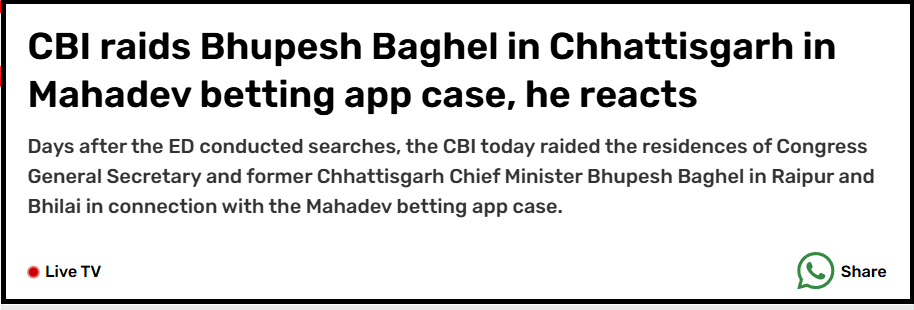 हालाँकि Baghel ने किसी भी तरह की गलत तरीके से किया गया काम, से इनकार किया और इसे political attack बताया, लेकिन तब तक यह मामला national spotlight में आ चुका था।
