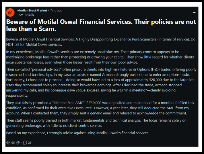 Now, not only on NSE and regulatory platforms, there are a few complaints that are raised by Motilal Oswal clients on different forums and platforms.