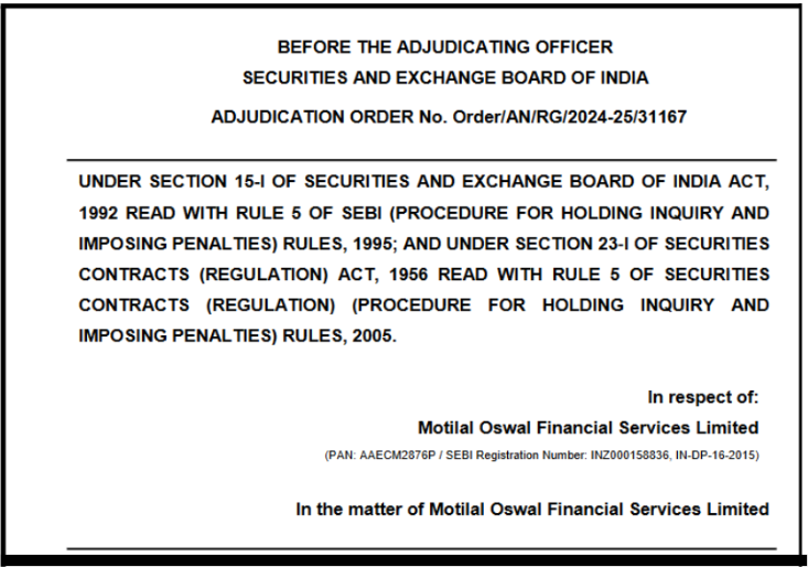 Based on findings, SEBI imposed a penalty of ₹25,00,000 on Motilal Oswal.