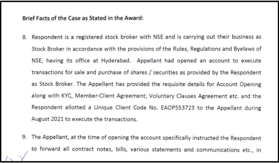 The Appellant, Mr. Biswas, alleged that MOFSL acted fraudulently and cheated him by unauthorizedly selling his shares at a loss. His primary grievances were: