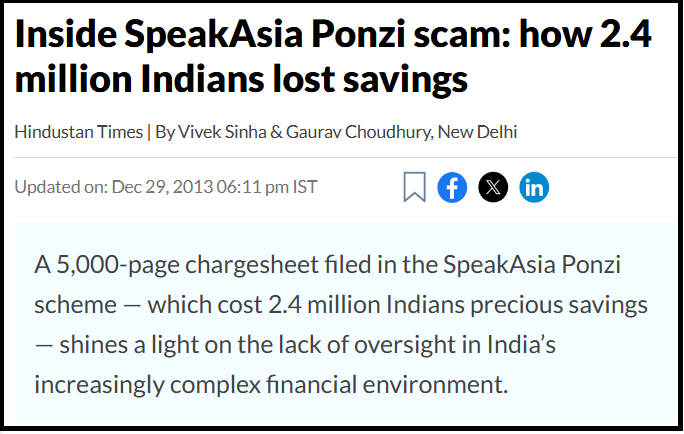SpeakAsia का यह केस स्पष्ट करता है कि दिखावटी कमाई और “जल्दी अमीर बनो” जैसे वादों के पीछे अक्सर बड़ा धोखा छुपा होता है।