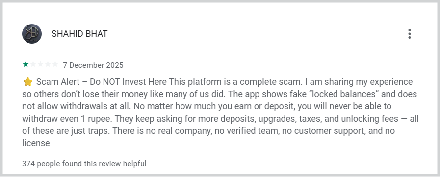 This lack of accountability immediately raises red flags and makes the platform appear unreliable. The platform is not regulated by key Indian authorities such as SEBI or the RBI.