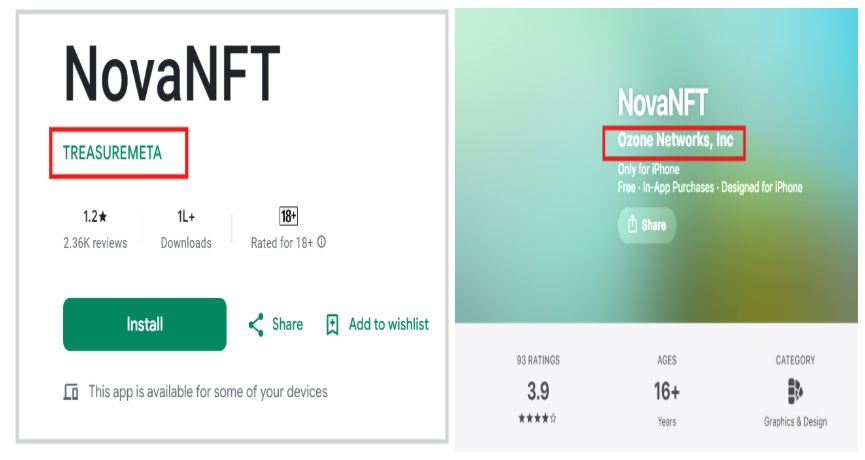 Further research reveals, Ozone Networks, Inc. owns the popular crypto app Opensea. And it is in no way linked to Nova NFT.