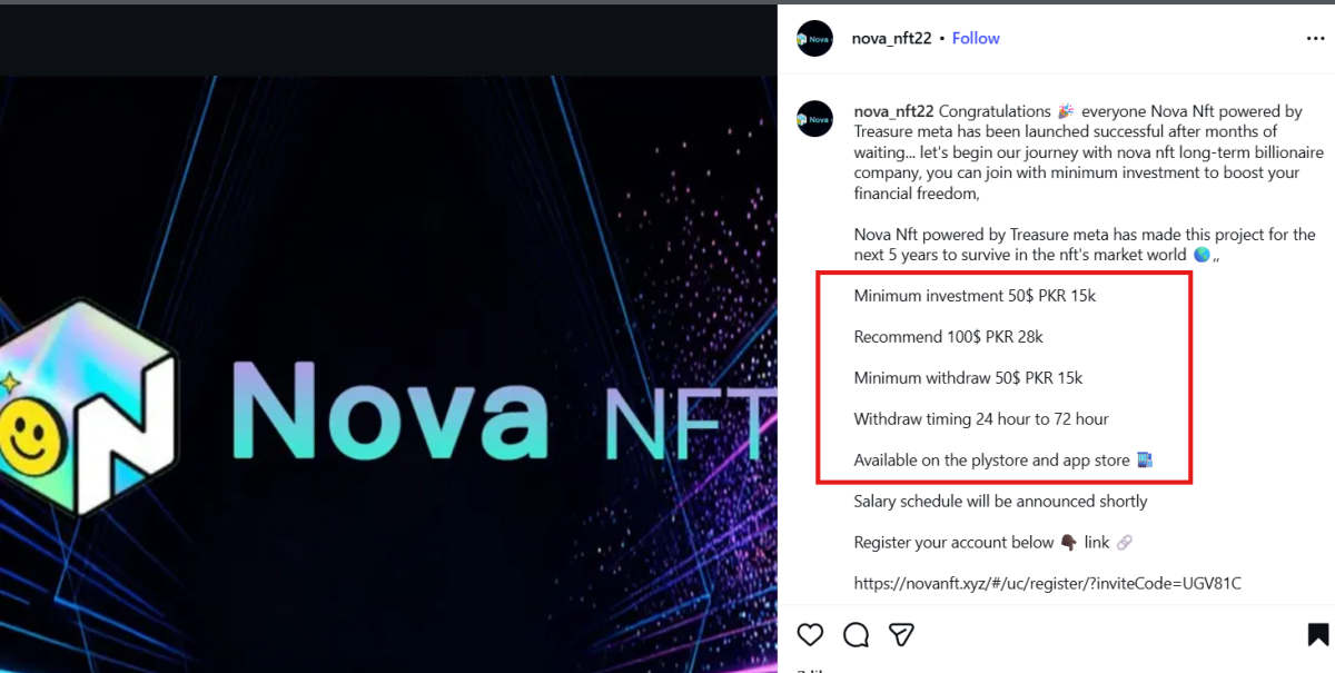 Behind Nova NFT are the same developers who previously ran Treasure NFT, a platform that vanished in early 2025 after allegedly scamming thousands of users. For many in the community, that history alone raises serious red flags.