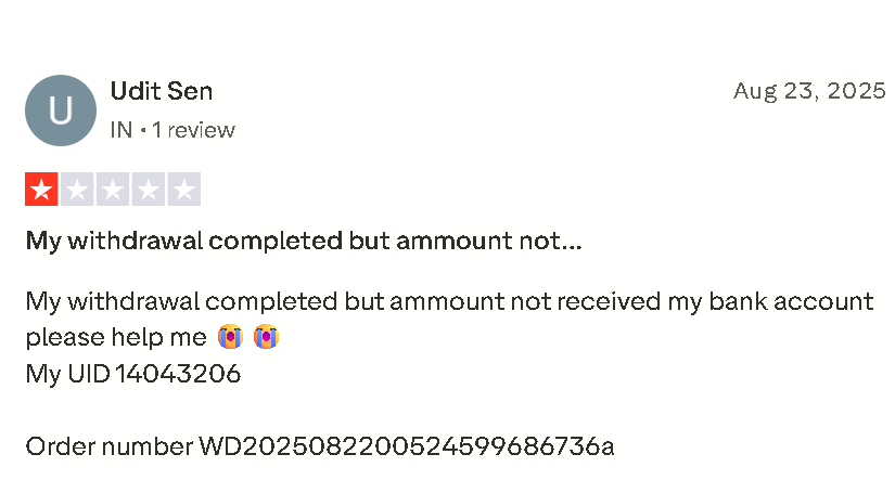 Here are some of the withdrawal complaints registered by other users