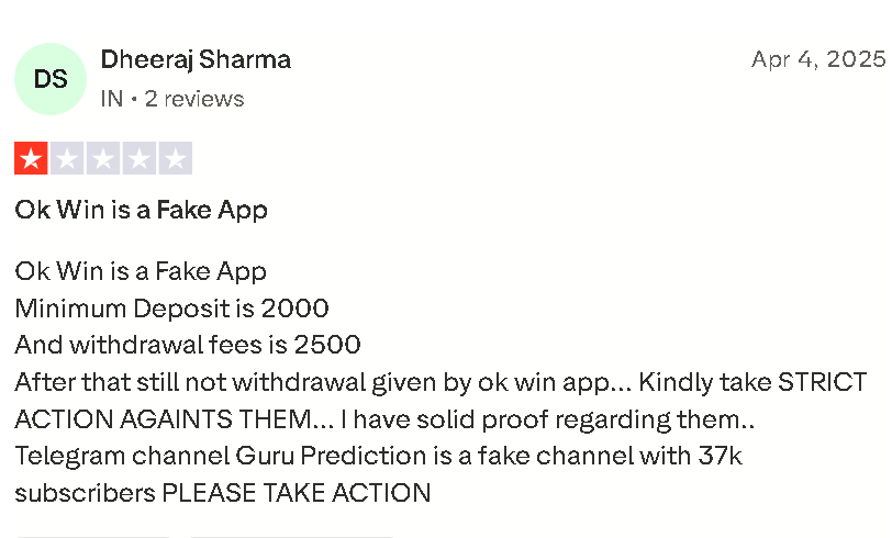 People have reported losing anywhere between ₹2,000 to ₹1 lakh without receiving a single rupee back. Several online complaints mention that Ok Win blocks accounts the moment users start asking for refunds.