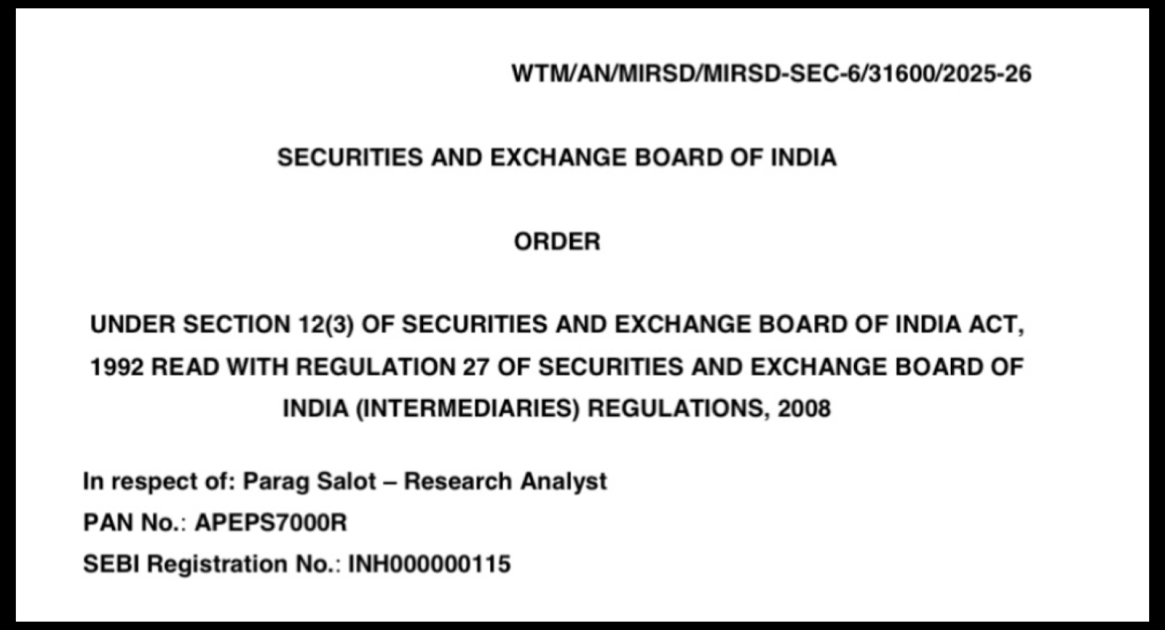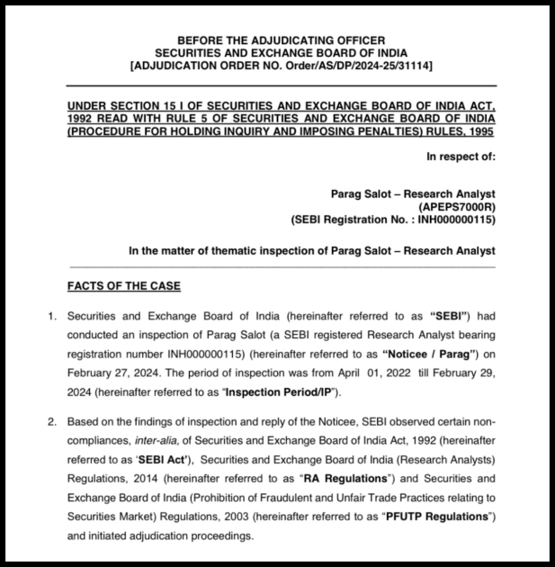 SEBI inspected Parag Salot from April 1, 2022, to Feb 29, 2024 and found multiple compliance lapses plus misleading “profit/assured return” type claims while marketing services.