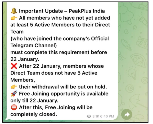 That is exactly what happened with Peakplus. They scheduled peakplus withdrawals for January 22, 2026, building massive hype across their groups.