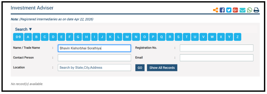 You can verify the registration on the Securities and Exchange Board of India intermediary portal.