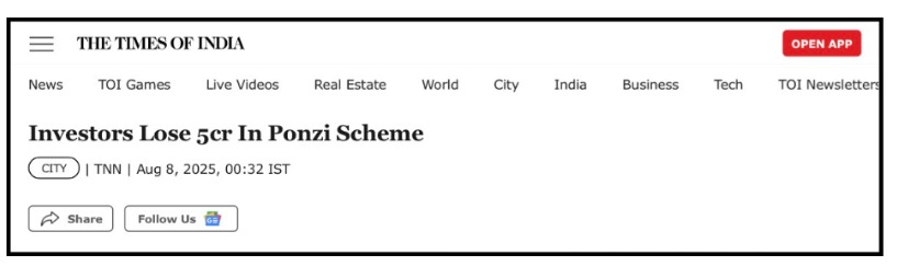 Ponzi Scam in Hyderabad: Real Cases