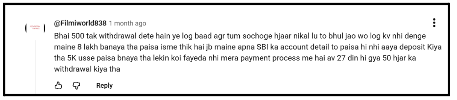 One user reported that withdrawals get stuck in “processing” status for days or even weeks. Customer support gives repetitive replies but never resolves the issue.