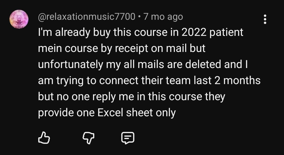 Customer service appears non-existent. A user purchased the course in 2022 but lost access when their emails were deleted.