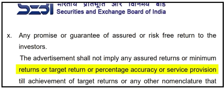 SEBI’s Research Analyst Master Circular has Section 8(C)(10). This section explicitly bans accuracy claims.