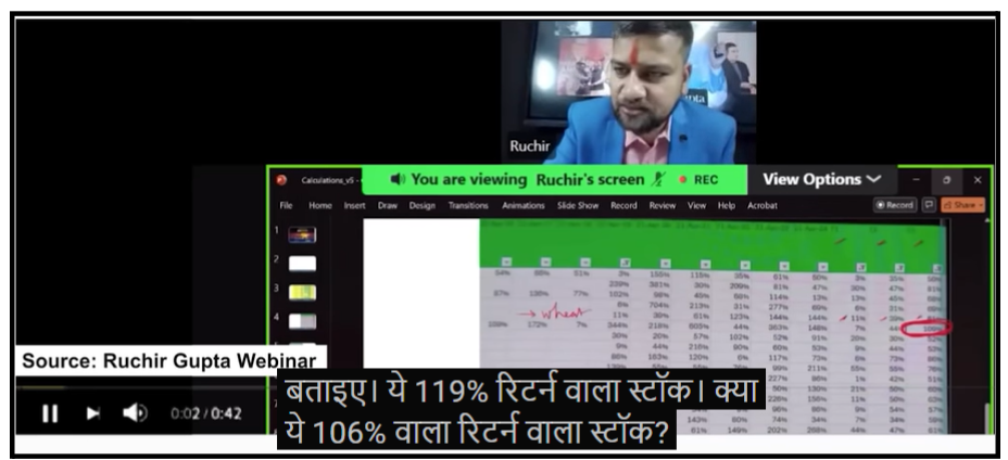Ruchir Gupta runs a stock market training academy. His name is quite popular on YouTube. Videos show him as an experienced trader. He claims 17+ years in the market.