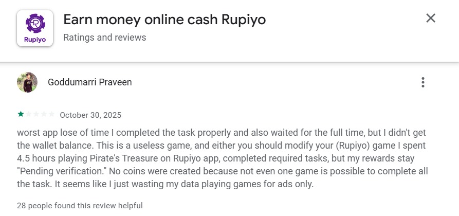 Rupiyo सिर्फ “quick earning” का दावा करता है, लेकिन practical experience दिखाता है कि real payout हमेशा smooth नहीं होता।