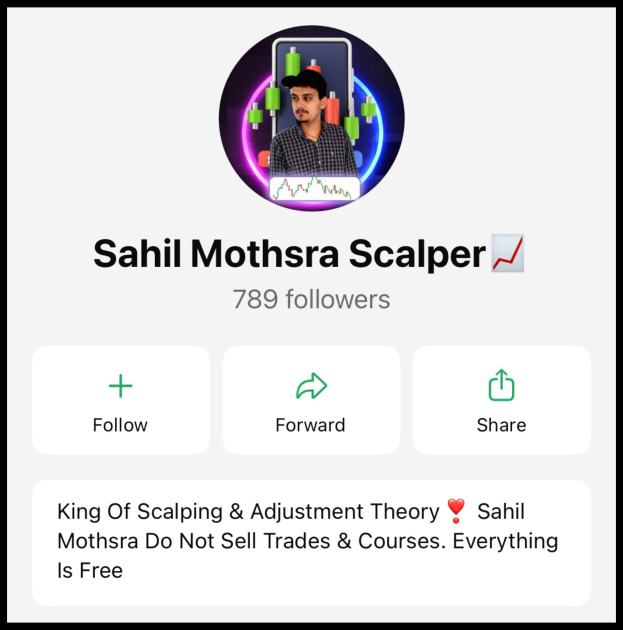 Sahil posts trading advice, adjustment theories, and live scalping demos that make it look like he’s crushing the market every time.
