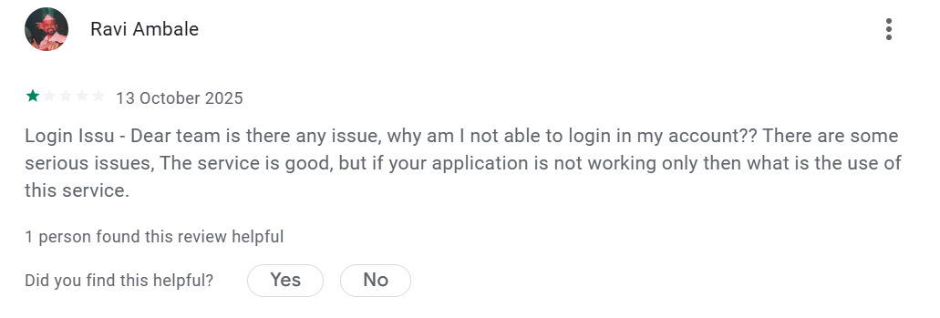Another user Ravi couldn’t login to his account at all and says the Samco App not working.