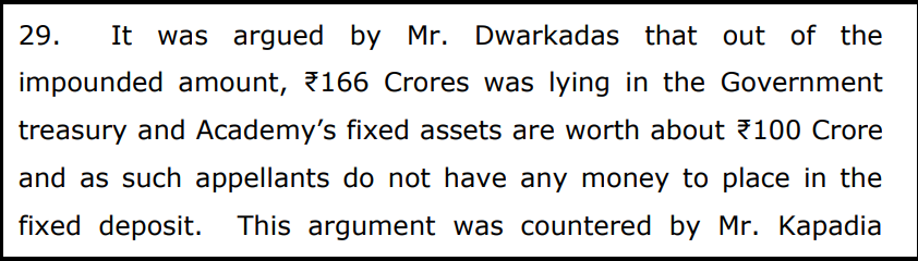 At the time SEBI froze the accounts, the academy had only around ₹4 crore available in its bank accounts, a point highlighted to show the impracticality of SEBI’s ₹546 crore deposit demand.