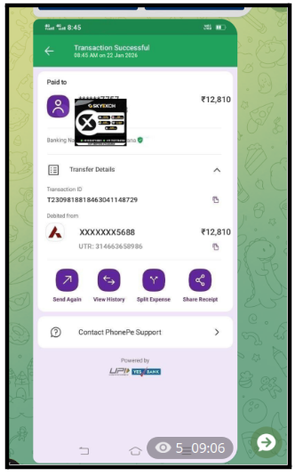 - Transaction screenshots with UTR numbers