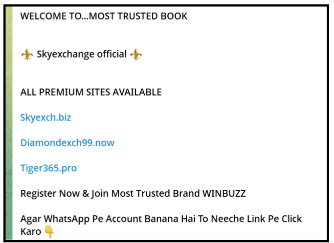 The Telegram channels promote multiple domains simultaneously. According to research, the original skyexchange.com was banned in India. They simply launched new names like SkyInplay.