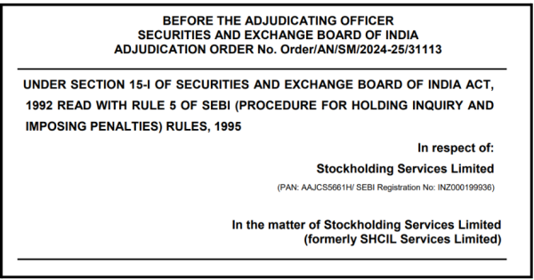 According to SEBI Adjudication Order No. Order/AN/SM/2024-25/31113 dated January 07, 2025, SEBI carried out a thematic inspection of Stockholding Services Limited for the period April 01, 2022, to June 20, 2023.