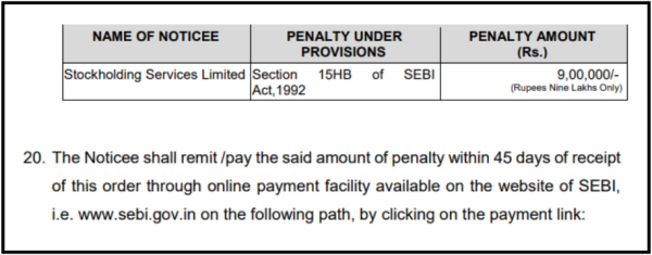According to the said adjudication order, SSL was directed to pay a penalty of ₹9,00,000 (Rupees Nine Lakhs Only) under Section 15HB of the SEBI Act, 1992, for violations of SEBI’s Master Circular dated May 17, 2023.