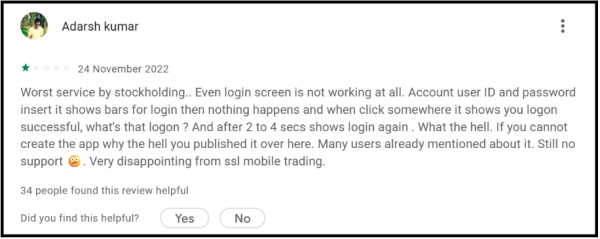 He notes frequent login failures and app hangs during crucial trading moments. Compared to other brokerage apps, he finds it significantly substandard and unreliable.