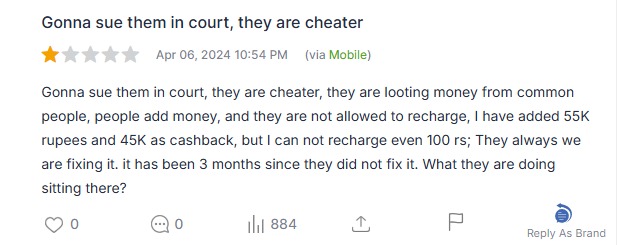One user shared that despite adding ₹55,000 and ₹45,000 as cashback, they haven’t been able to recharge even ₹100 for over three months, calling TalkCharge a “cheater” and accusing them of looting money from common users.