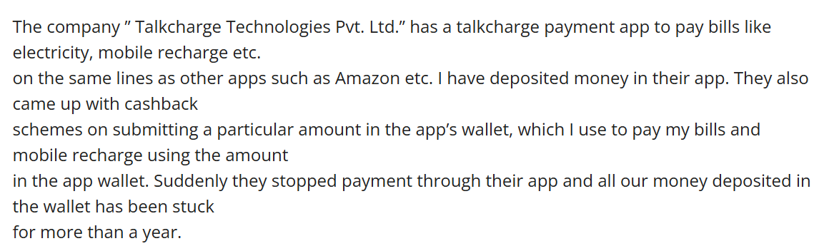 Another user reported: Talkcharge users were charged excessive fees, up to 20% of their wallet balance, for services like recharges and bill payments, even after limits were supposedly capped.