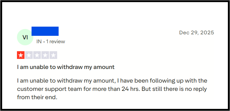 Another user shared a similar experience, describing how a withdrawal request was raised and then met with complete silence. More than 24 hours passed, repeated follow-ups were made, yet customer support never responded.