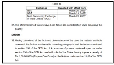 Penalty: ₹1,00,00,000 (One Crore Rupees). BSE expelled Trdez on March 20, 2026. NSE and MCX expelled it on March 23, 2026.