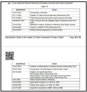 SEBI mapped 11 interconnected entities created by Trdez’s directors and their associates. These included Trdez Investment itself (described in the order as the “main entity that was created to mislead investors”), Trdez Financial Services, Infinite Beacon Financial Services, IB Prop Desk Silver, Infinite Beacon Prop Desk Commodity, Infinite Beacon Prop Desk Seven, Sispay TFS, Sispay Finowealth India LLP, Sispay Trdez Ventures Private Limited, Codereal Tech Private Limited, and Infinite Beacon India Private Limited (described as “created solely to mislead the investors”).