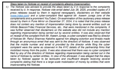 What makes this even more significant: SEBI’s order (Page 12, Para t) specifically notes that when Trdez was asked what steps it took against impersonation, it provided copies of three generic press releases (none of which named Infinite Beacon or any specific entity), a generic website disclaimer, and a cyber complaint filed, not against the entities impersonating it, but against us.