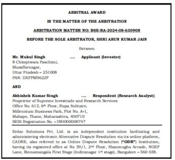 Arbitration found that the advice contributed to additional losses and awarded Mukul ₹25,000 compensation.