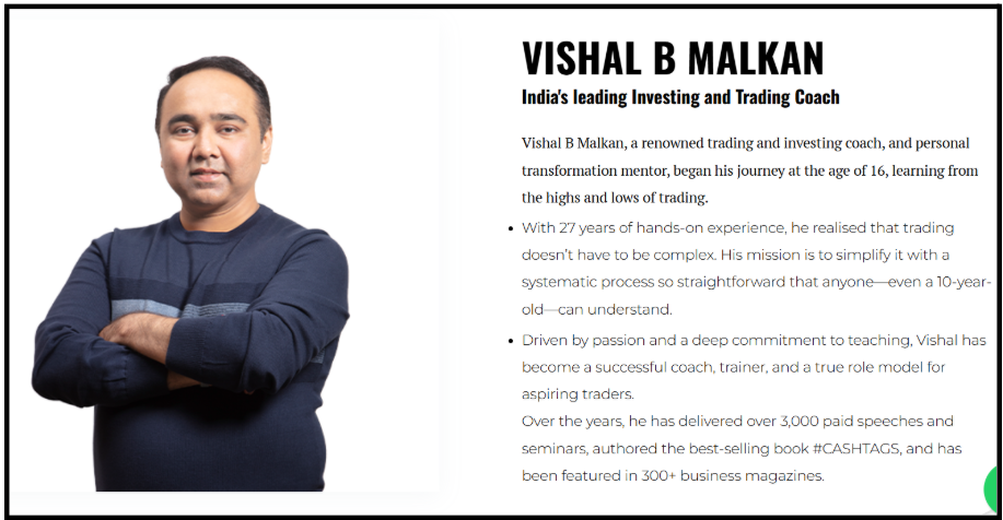 Vishal Malkan is a stock market trainer operating in India. He claims 15 years of teaching experience. His pitch?