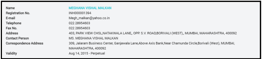 But his wife, Meghana Vishal Malkan, DOES hold a valid SEBI registration.
