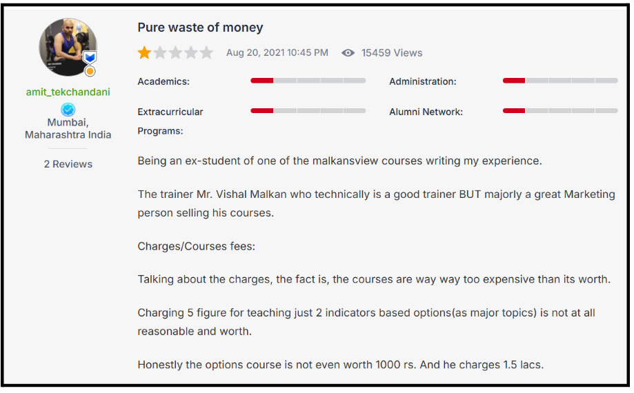 Beyond course quality issues, students have specific observations about Vishal Malkan’s credibility, character, and approach as an instructor.