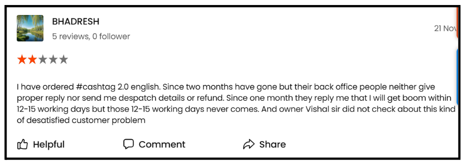 What this reveals: Two months of waiting with repeated false promises indicates systematic delivery failure. The “12-15 working days” promise gets repeated but never honoured, a tactic to keep customers waiting while avoiding refunds.