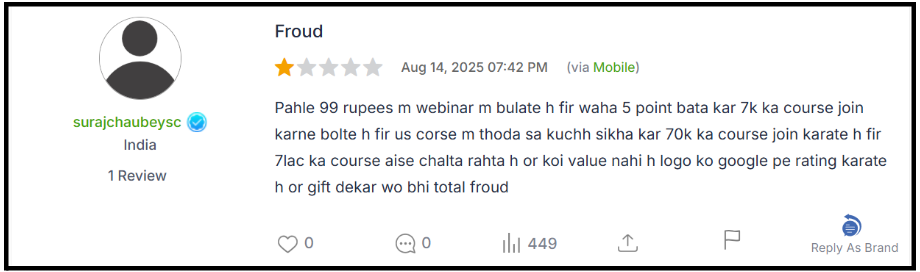 Many students across India report confusion, dissatisfaction, or financial stress after participating in similar trading education programs.