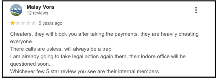 As Malay warned: “Whichever few 5-star reviews you see are their internal members.”
